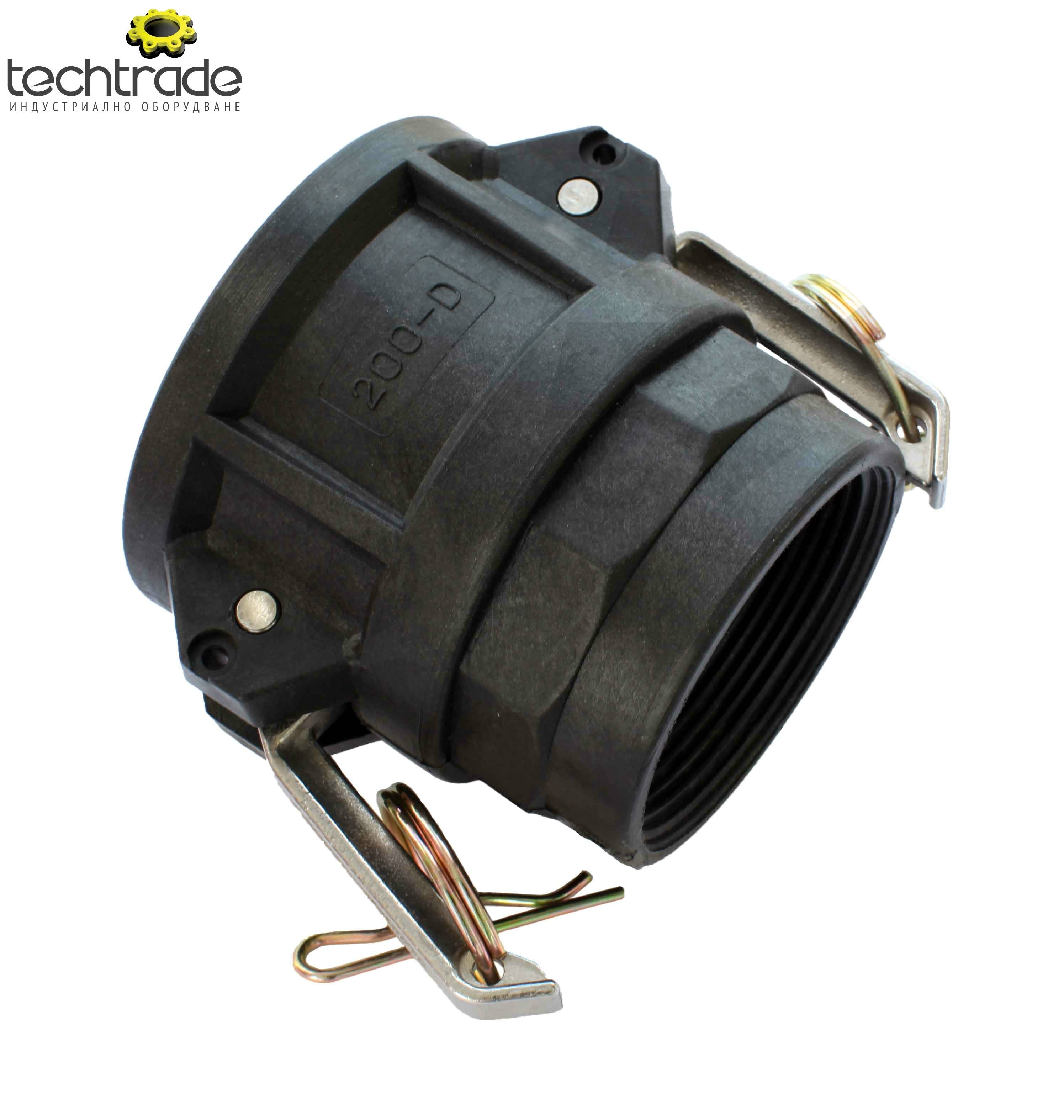 Бърза връзка, тип КАМЛОК, Европейски произход, тип D - женска част, женска резба, тяло - полипропилен, ръкохватки - Неръждаема стомана, уплътнение - маслоустойчива гума, размери 1/2'' ÷ 4"